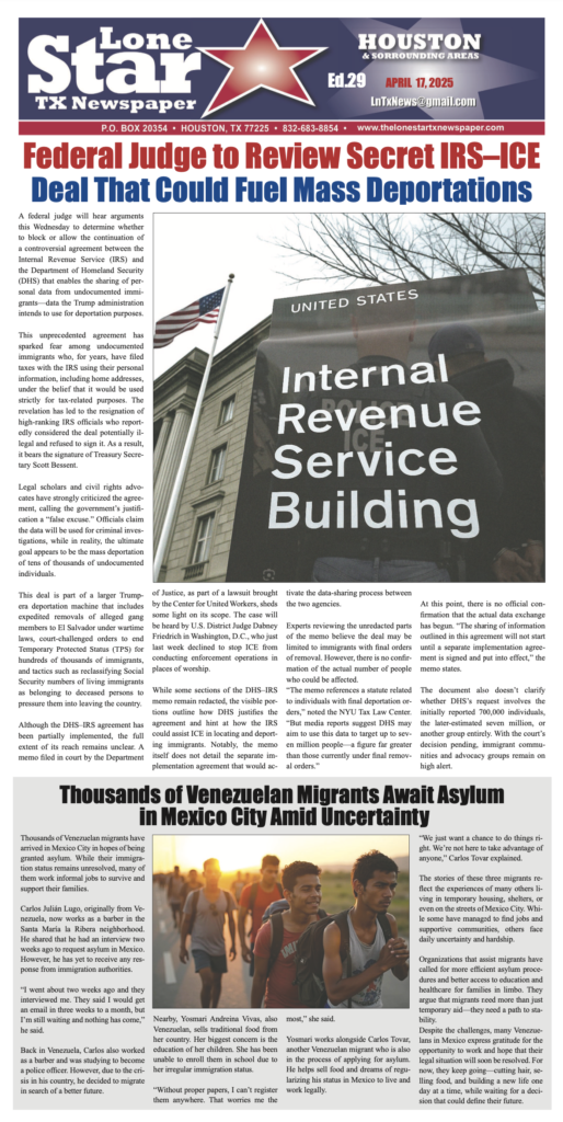 Lone Star edition #27 Posted by Mauricio Hidalgo | Apr 17, 2025 | Uncategorized | 0 | Find our weekly edition of Lone Star at our distribution points, the Houston newspaper completely FREE! Call us and place your ad in our newspaper to become part of the Lone Star family!